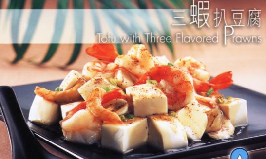 (1) 蝦仁去黑腸, 沖淨及抹乾, 拌入醃料. 蝦乾沖淨,放碟內, 加薑絲蒸軟 (2) 草菇切開邊與紅蘿蔔一起飛水 (3) 豆腐切粗粒, 盛碟內, 蒸4分鐘 (4) 燒2湯匙油, 先炒蝦仁, 加薑蒜, 蝦乾, 草菇及紅蘿蔔, 注 入獻汁及蝦子煮滾 (5) 把三蝦等與豆腐輕輕拌勻. 完成上碟.