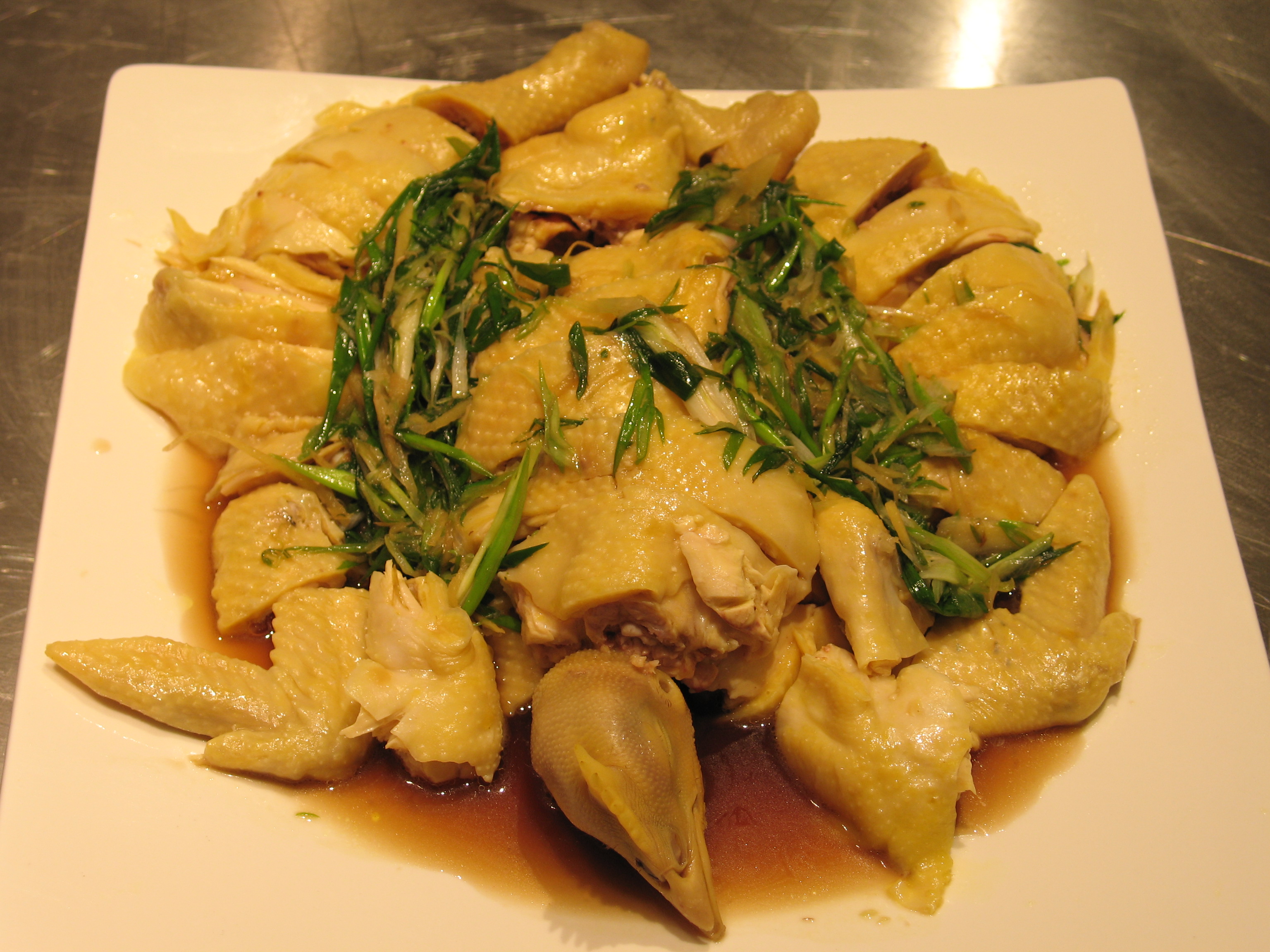 Pour sauce over chopped chicken and serve with ginger sauce dip. |